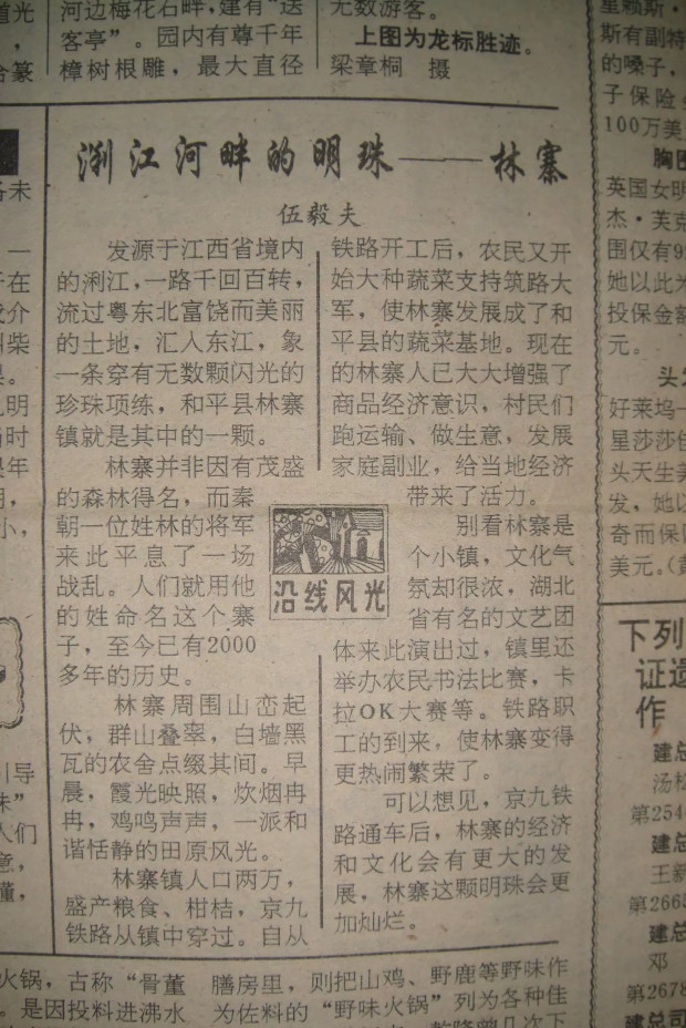 我经营的电影院经常下工队放影,我还接纳很多演出单位前来电影院献艺,特别是香港名歌星、安徽天长歌舞团、江西省、广西省歌舞团的演出,艺惊四座,留下千古佳话,《中国铁路报》对林寨进行报道。