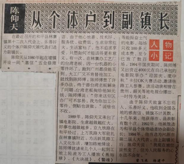 当时个体户当选副镇长,这个话题较为新鲜,《广东工商报》、《个体经济报》、《南方日报》、《河源报》、等曾撰文报道,
